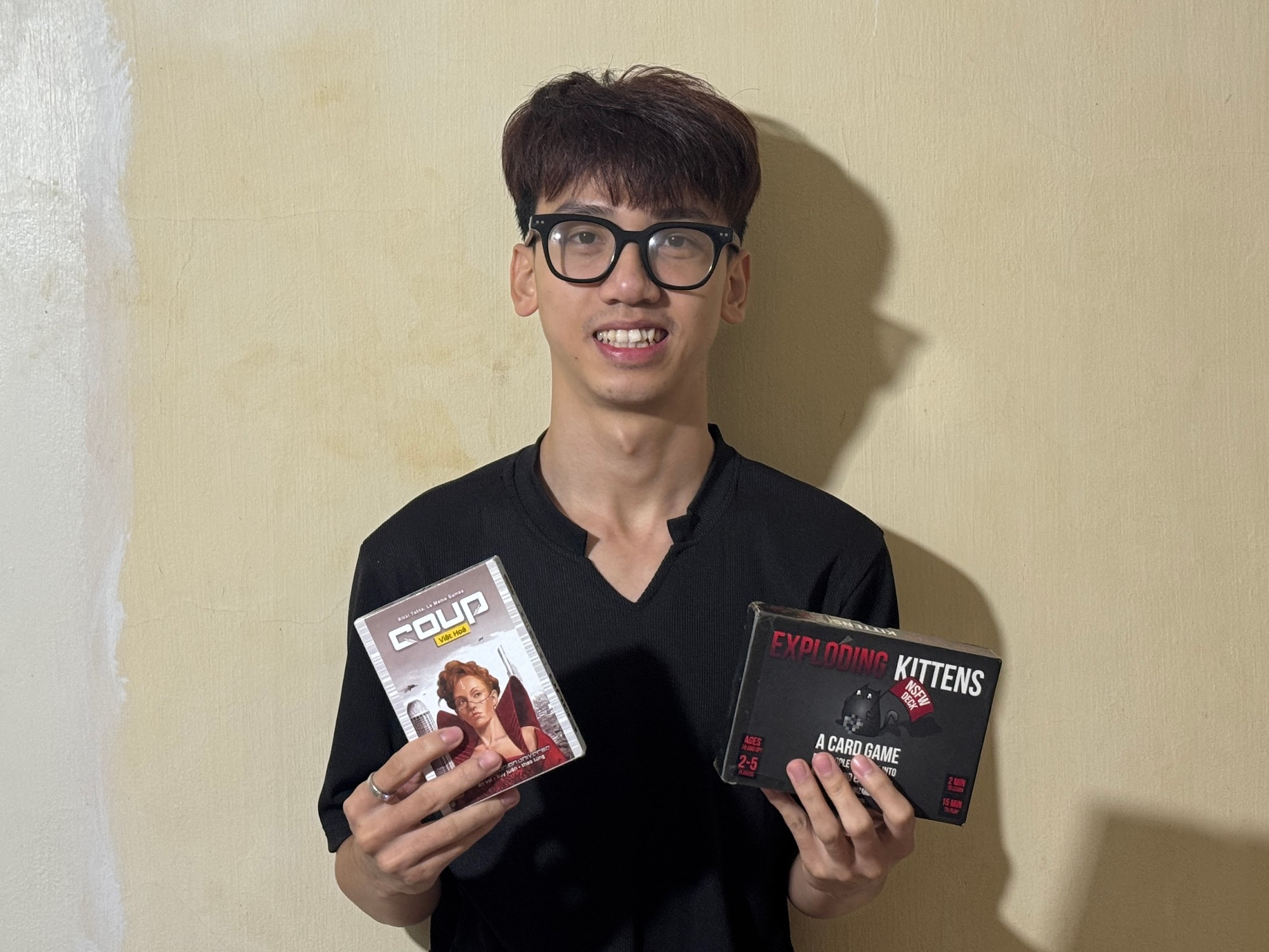 "Trong tất cả các trò chơi mà mình sưu tầm thì mình rất đánh giá cao và muốn giới thiệu cho các bạn 2 trò chơi là Coup và Mèo nổ. Mình đánh giá 2 trò chơi này rất vui giải trí, phù hợp cho nhóm đông người và rất dễ hiểu,dễ chơi, dễ tiếp cận tại thị trường Việt Nam."- Huy chia sẻ.