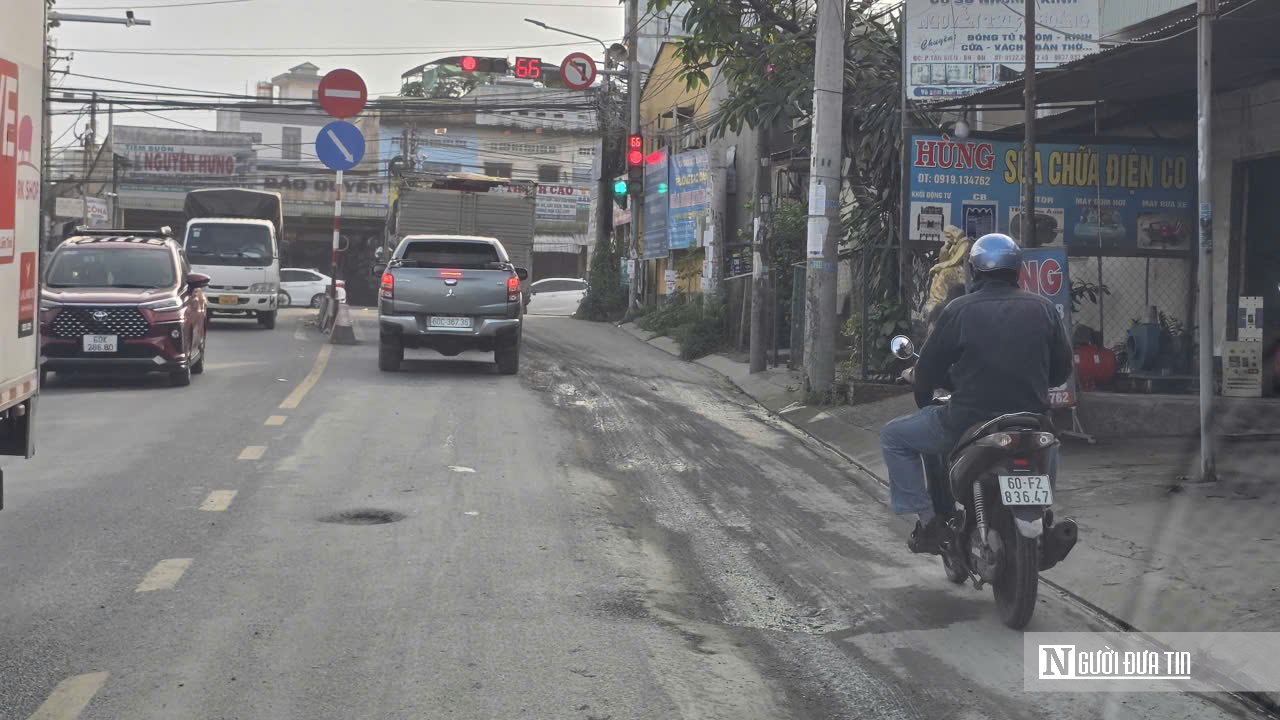 Tương tự, trên tuyến đường Đồng Khởi, đoạn qua trạm thu phí số 2B (phường Trảng Dài), theo ghi nhận của PV, nhiều ổ voi, ổ gà xuất hiện. Đơn vị thi công cũng đã thảm nhựa một phần rồi để đó suốt nhiều tháng nay, gây mất an toàn giao thông cho người đi đường.