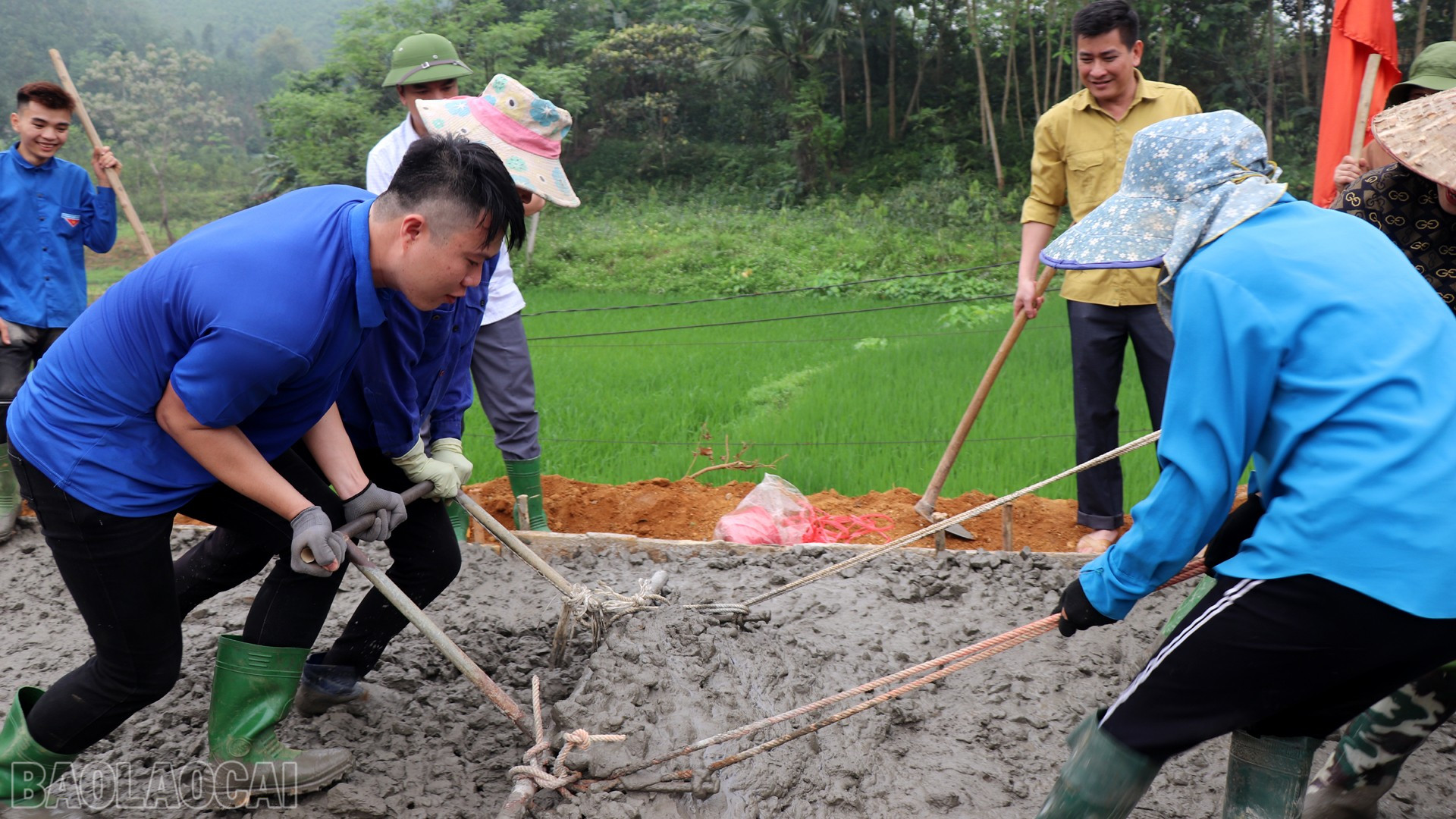 Còn tại xã Đông Cuông, tuyến đường nối giữa thôn Khe Voi và thôn Trà đi qua khu sản xuất nông nghiệp của thôn được hoàn thành trong niềm hân hoan của người dân khi Tết Nguyên đán Bính Ngọ đã cận kề. Từ sự hỗ trợ vật liệu của Nhà nước, bà con trong thôn tự nguyện hiến đất và tham gia đóng góp ngày công đổ bê tông để nhanh chóng hoàn thành tuyến đường này.