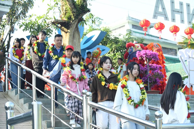 Đoàn du khách được tặng hoa, lì xì đầu năm.