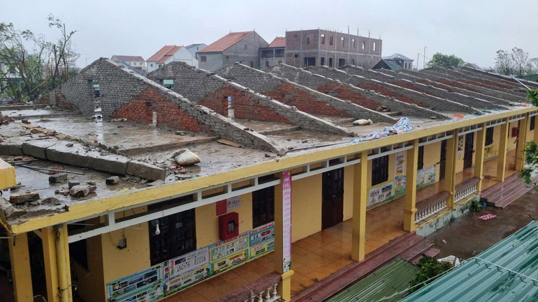 Trường học xã Cổ Đạm, tỉnh Hà Tĩnh bị ảnh hưởng nặng nề của bão số 10. (Ảnh NGÔ TUẤN)