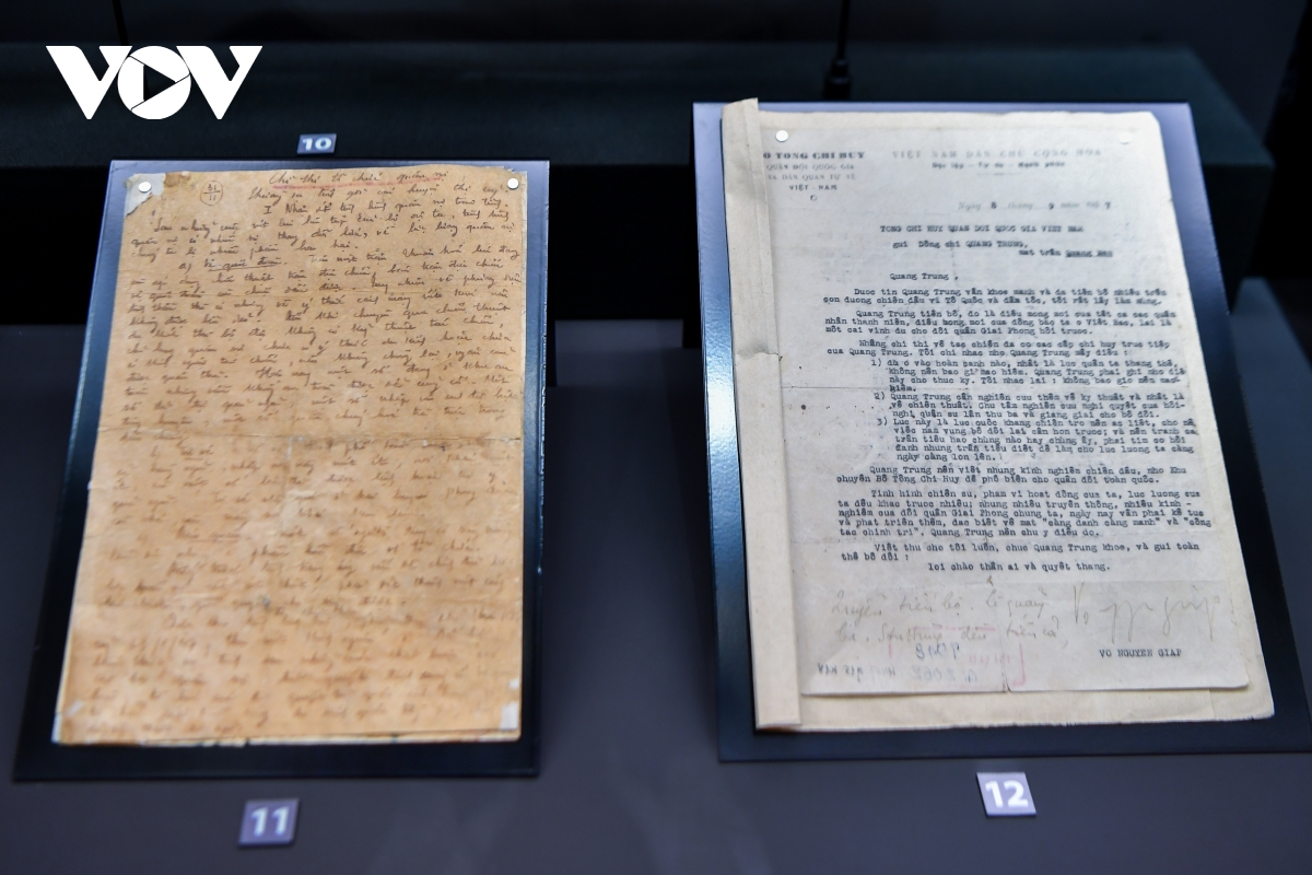 Chỉ thị của Bí thư Liên Khu ủy Liên khu IV Nguyễn Chí Thanh về tổ chức quân sự ở Bình - Trị - Thiên năm 1947 (bên trái) và Thư của Tổng Chỉ huy Quân đội quốc gia Việt Nam Võ Nguyên Giáp gửi Chỉ huy trưởng Bộ chỉ huy mặt trận Quảng Nam - Đà Nẵng năm 1947.