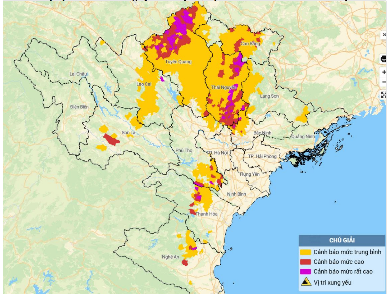 Bản đồ nguy cơ lũ quét, sạt lở tại các khu vực