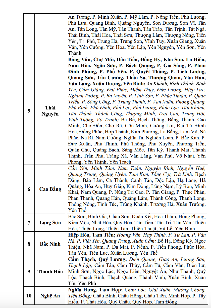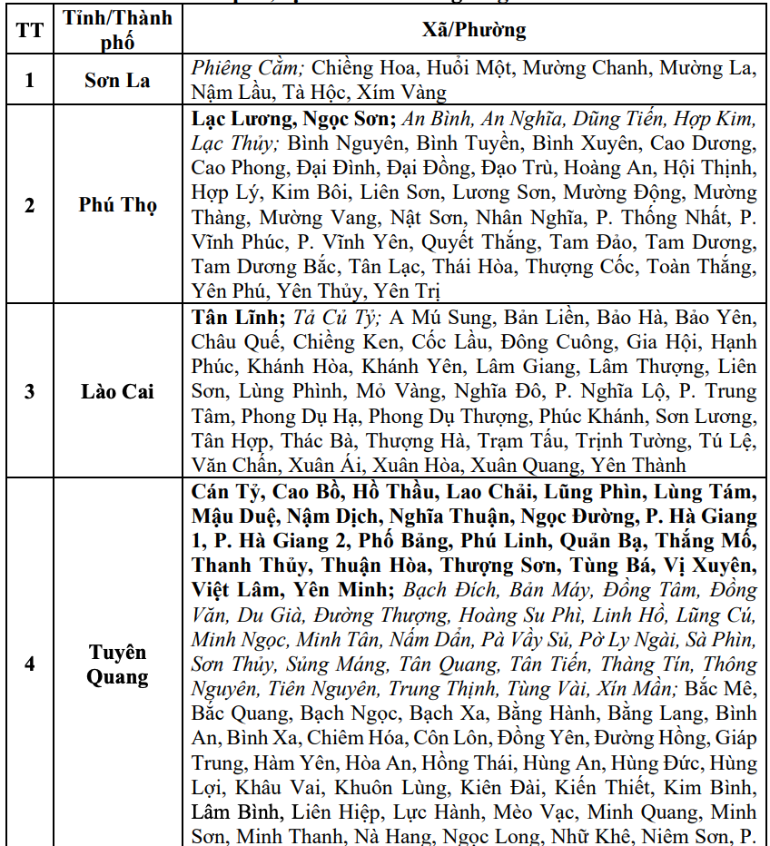 Các xã, phường có nguy cơ xảy ra sạt lở, lũ quét