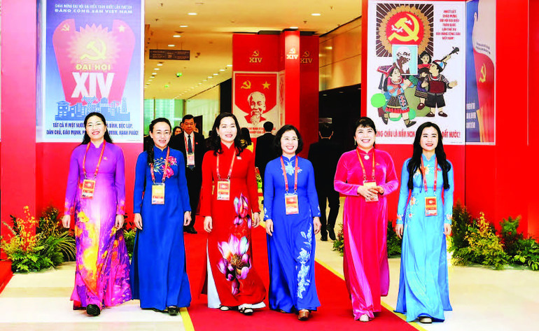 Các đại biểu đến dự Đại hội Đảng toàn quốc lần thứ XIV. (Ảnh HẢI LINH)