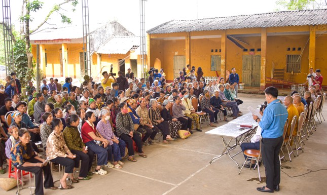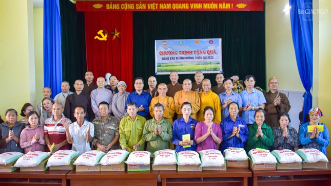 "Lũ xong, bà nhà tôi bị bệnh phải nhập viện nên tôi phải tranh thủ đến sớm nhận quà để về tiếp tục dọn dẹp vườn sau lũ, rồi còn lên chăm bà. Tôi rất cám ơn các thầy, các cô và Phật tử ở trong miền Nam xa xôi đã chia sẻ những thiệt hại với người dân chúng tôi ở đây.", vừa nói, ông Thưởng vừa nhét vội 2 bao thư do đoàn từ thiện trao tặng vào túi áo, buộc bao gạo và thùng mì lên chiếc xe đạp cà tàng của mình rồi ra về.
