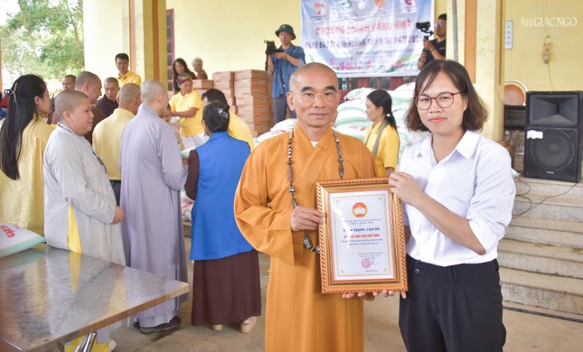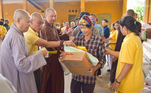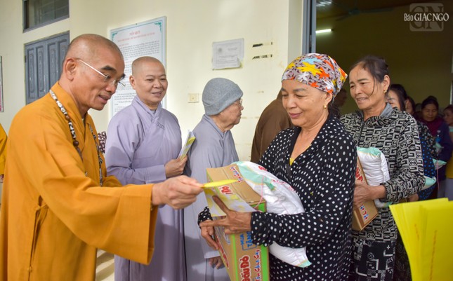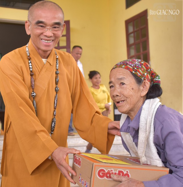 Thượng tọa Thích Tuệ Hải, Phó Trưởng ban Kinh tế - Tài chính T.Ư, Phó ban Từ thiện xã hội T.Ư kiêm Trưởng Phân ban cứu trợ nhân đạo, trụ trì chùa Long Hương (Đồng Nai) cùng các thành viên trong đoàn tặng quà đến người dân tại tỉnh Bắc Ninh