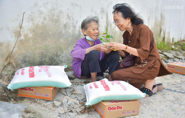 Ni trưởng Thích nữ Huệ Tuyến, Phó Trưởng Phân ban Ni giới T.Ư, Phó Trưởng ban Kinh tế - Tài chính T.Ư thăm hỏi 1 cụ bà tại thôn Vòng Huyên, xã Bố Hạ, tỉnh Bắc Ninh