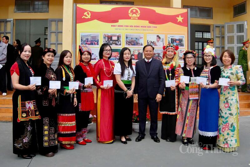 Bí thư Tỉnh ủy Lai Châu Lê Minh Ngân cùng các cử tri hân hoan trước giờ bỏ phiếu.