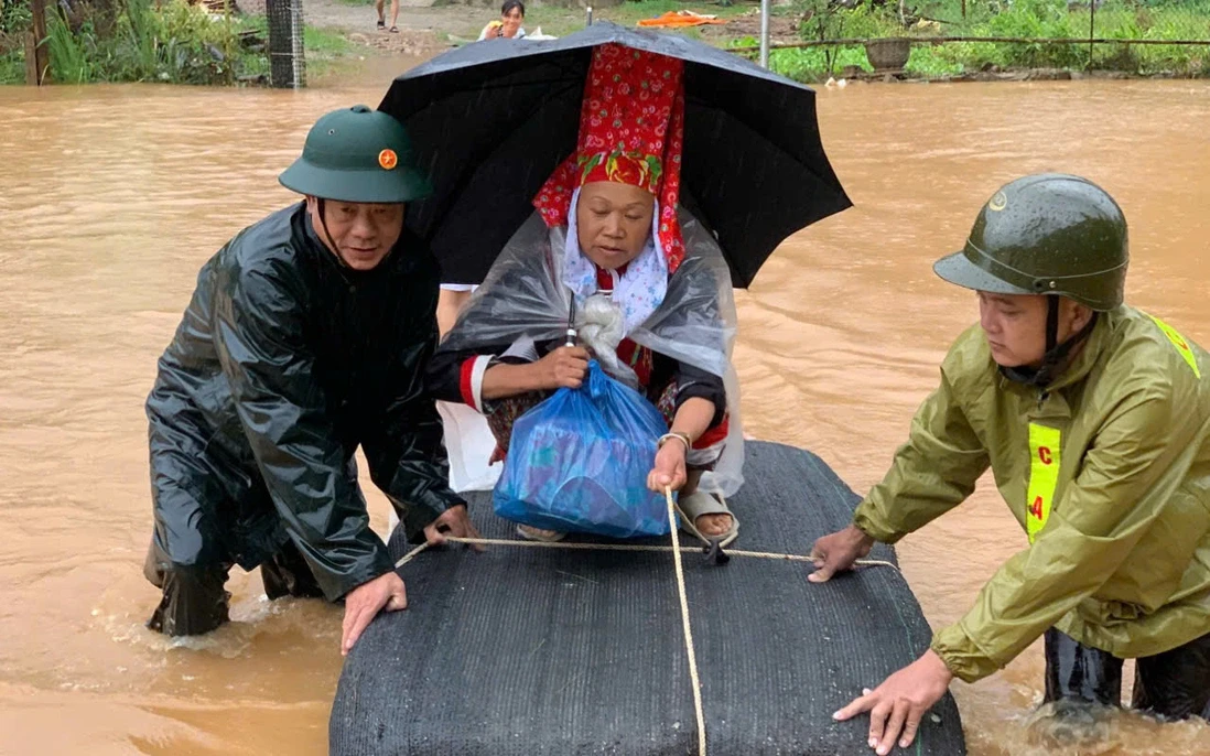 Cán bộ, chiến sĩ biên phòng và lực lượng chức năng tỉnh Quảng Ninh dầm mình trong lũ đưa người dân đến nơi an toàn