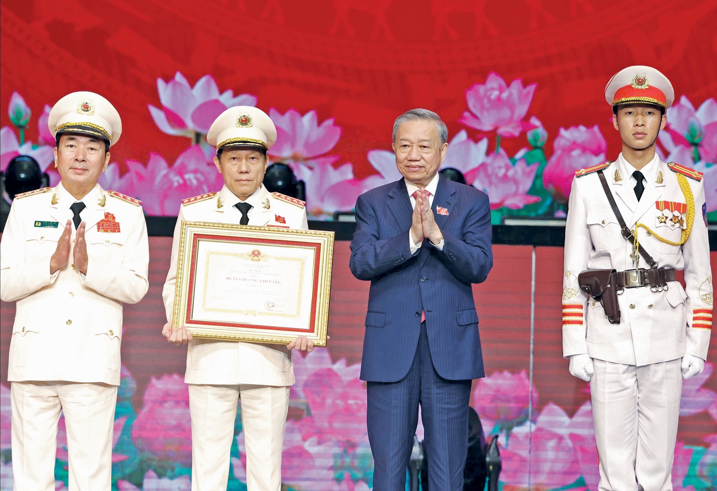 Tổng Bí thư Tô Lâm trao Huân chương Sao vàng tặng lực lượng Công an nhân dân. Ảnh: Nguyễn Hải