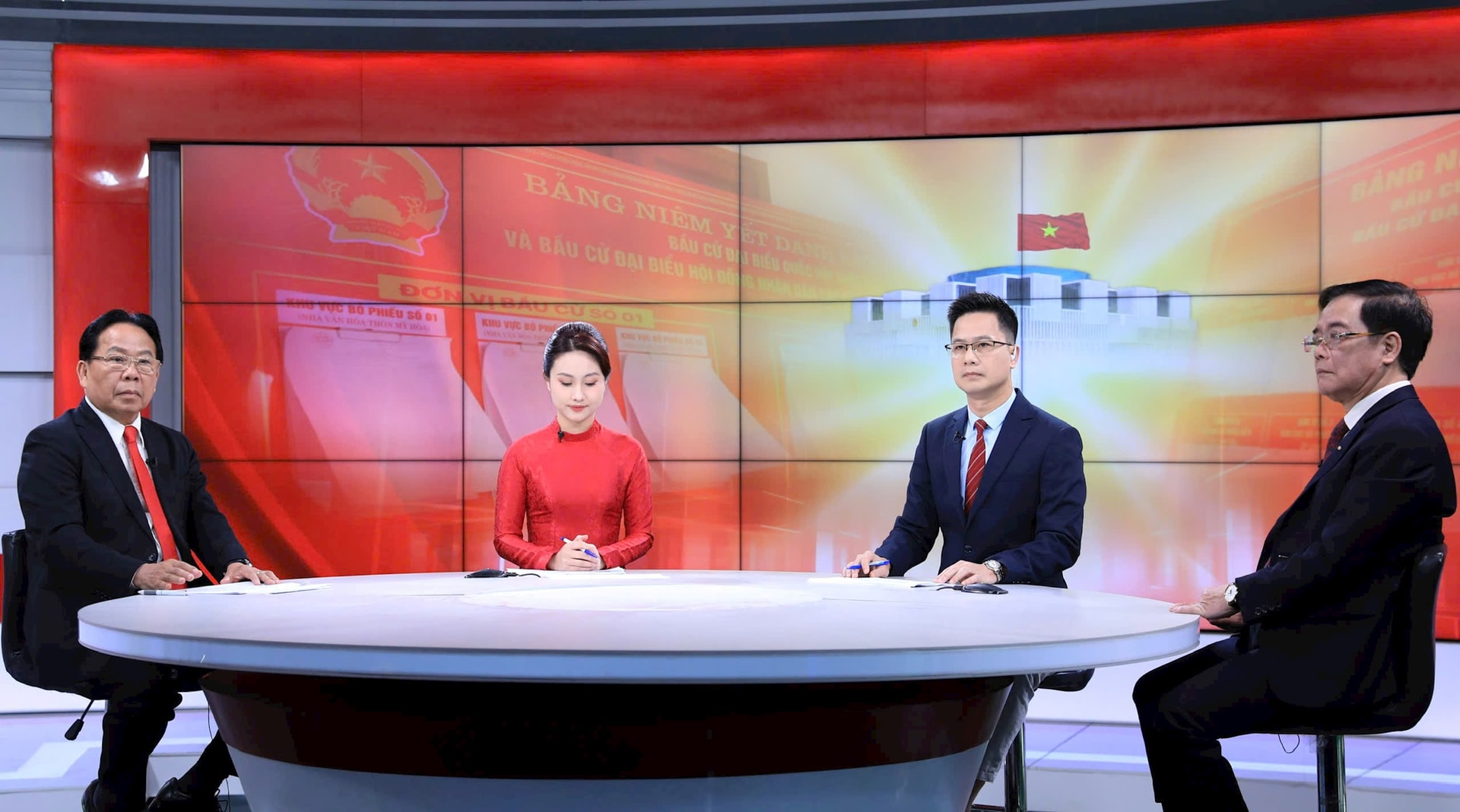 Các khách mời tham dự Chương trình thời sự đặc biệt “Hà Nội sẵn sàng cho ngày hội non sông” của Cơ quan Báo và Phát thanh, truyền hình Hà Nội tối 9-3-2026. Ảnh: Quang Thái