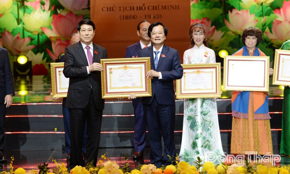 Chủ tịch nước Lương Cường trao danh hiệu Anh hùng Lao động cho các tập thể và cá nhân.