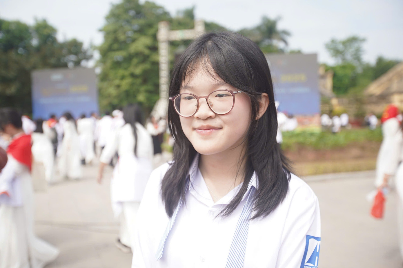 Em Lê Bảo Châu Anh - lớp 10 Sinh 2, Trường THPT chuyên Hà Nội - Amsterdam, chia sẻ trong niềm hân hoan khó giấu khi chứng kiến đàn anh của mình giành vòng nguyệt quế.