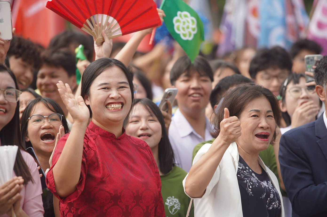 Thầy cô, phụ huynh, học sinh hò reo cổ vũ cho Bảo Khánh.