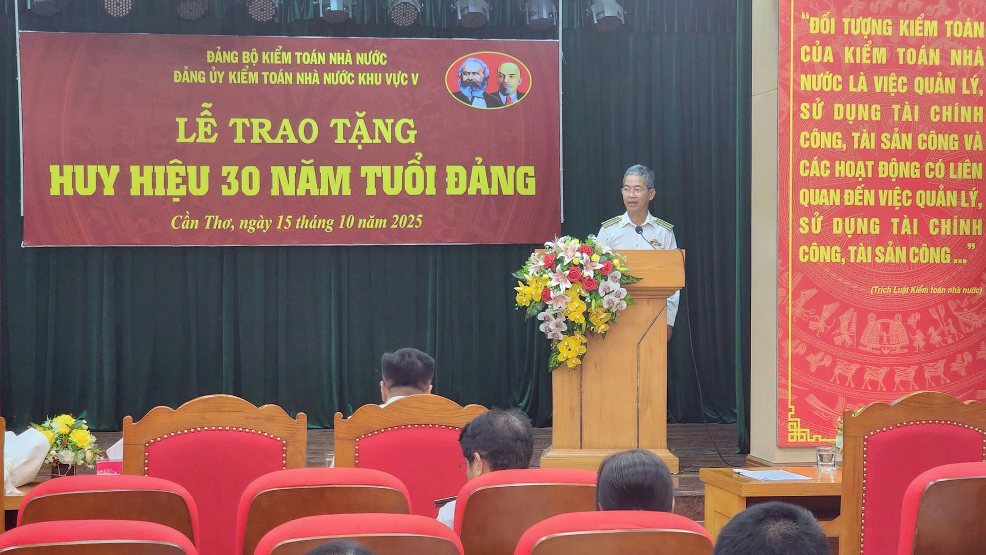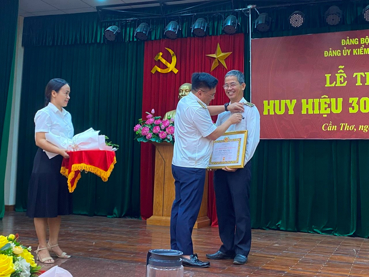 Thay mặt Đảng ủy KTNN khu vực V, đồng chí Nguyễn Đức Sỹ - Bí thư Đảng ủy KTNN khu vực V đã gắn Huy hiệu, trao Quyết định và tặng hoa chúc mừng đồng chí Dương Hoàng Dũng vinh dự được trao tặng Huy hiệu 30 năm tuổi Đảng và xem đây là niềm vinh dự lớn đối với toàn Đảng bộ KTNN khu vực V khi tổ chức đảng có những đảng viên ưu tú, nhiều năm cống hiến cho sự phát triển chung của KTNN.