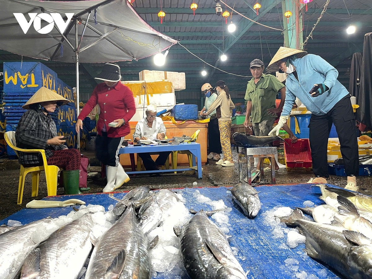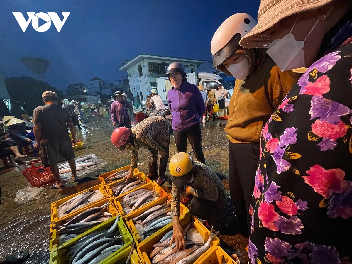 Hoạt động buôn bán nhộn nhịp trong đêm ở cảng cá Cồn Chà