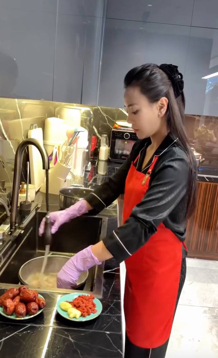 Phương Oanh đăng tải một đoạn video ghi lại quá trình tự tay chuẩn bị bữa ăn tại nhà (Ảnh: FBNV).