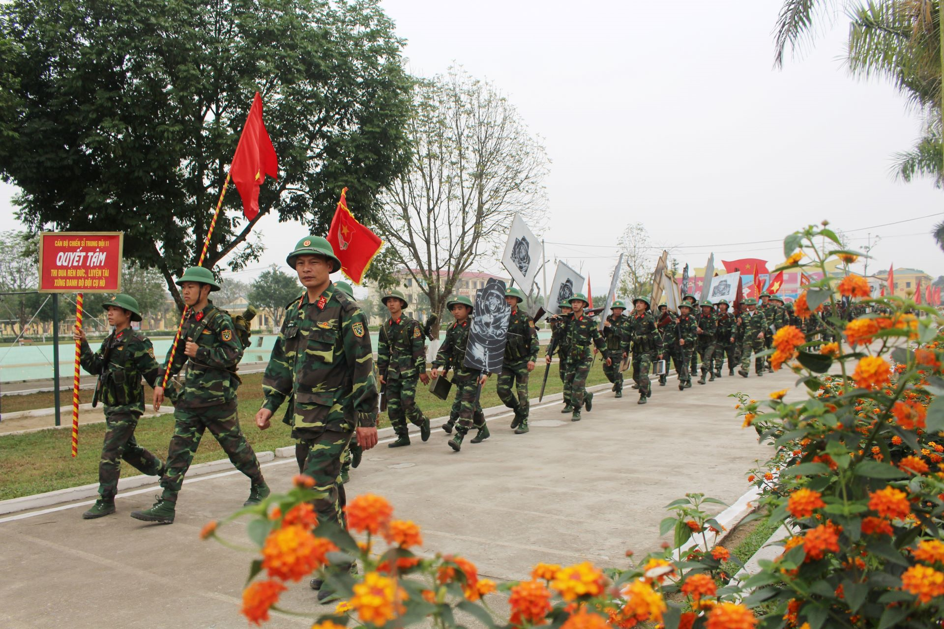 Cán bộ, chiến sĩ Sư đoàn 316 trên đường hành quân ra thao trường.