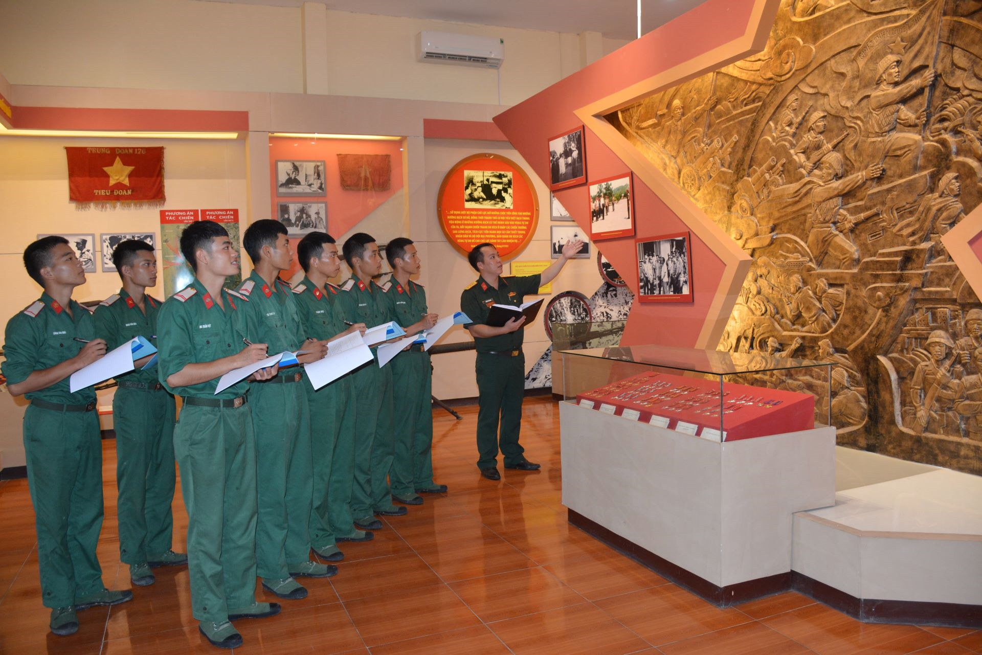 Chiến sĩ trẻ Sư đoàn 316 học tập, tìm hiểu lịch sử tại Phòng truyền thống của Sư đoàn.