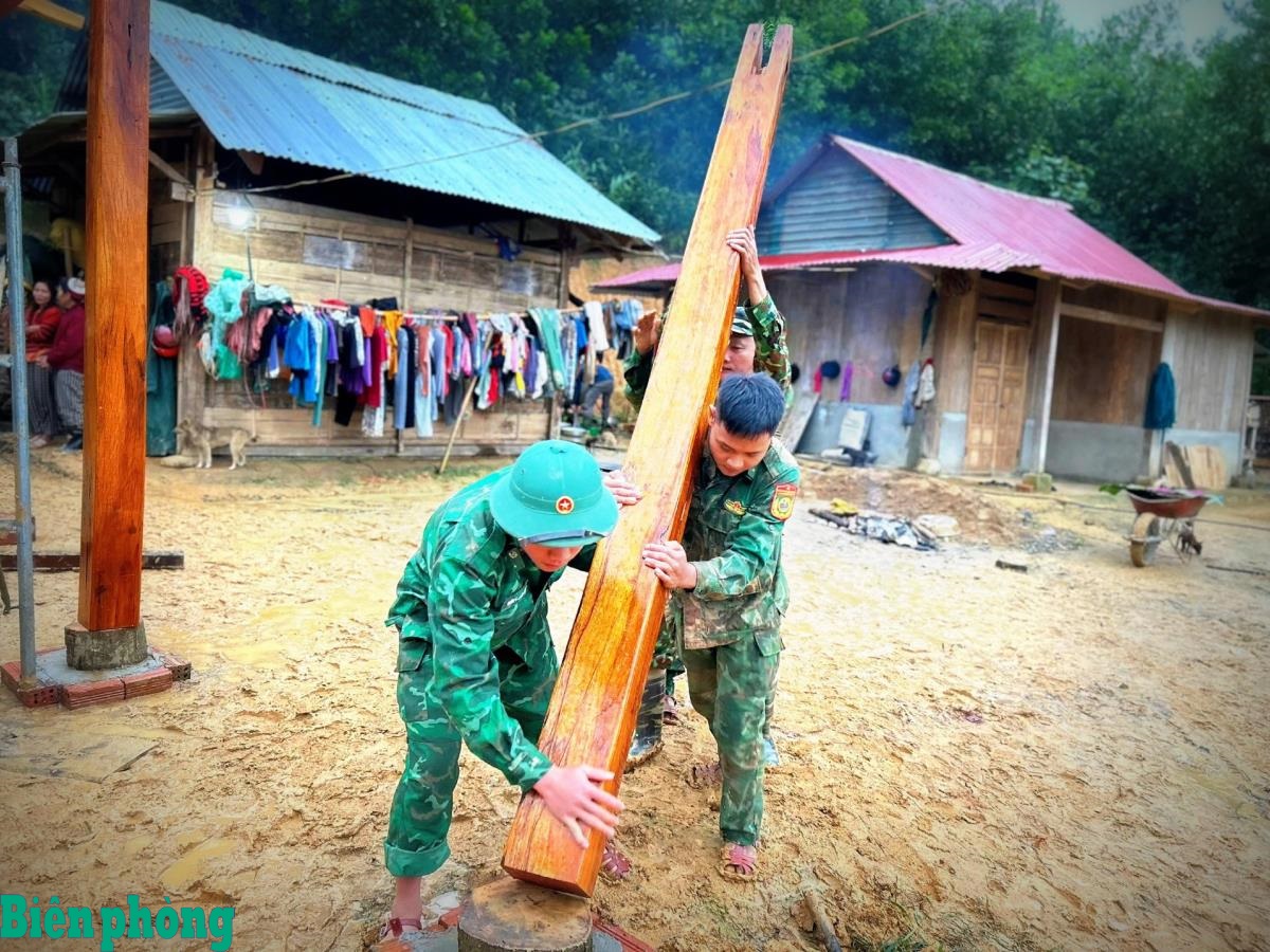 Những ngày thần tốc thực hiện “Chiến dịch Quang Trung”, dẫu mưa vẫn bay lất phất và cái lạnh vùng núi cao phủ xuống những khuôn mặt cán bộ, chiến sĩ Biên phòng đầm đìa mồ hôi, nhưng những bàn tay vẫn thoăn thoắt trộn vữa, xây tường, dựng nhà cho đồng bào vùng biên. Cán bộ, chiến sĩ cõng từng bao xi măng, kéo từng tấm tôn trên con đường còn lầy lội nước để cùng dựng lại từng cây cột, từng mái nhà. Tiếng búa, tiếng cưa vang lên không ngơi nghỉ như nhịp đập khẩn trương của một chiến dịch thần tốc hiếm có.