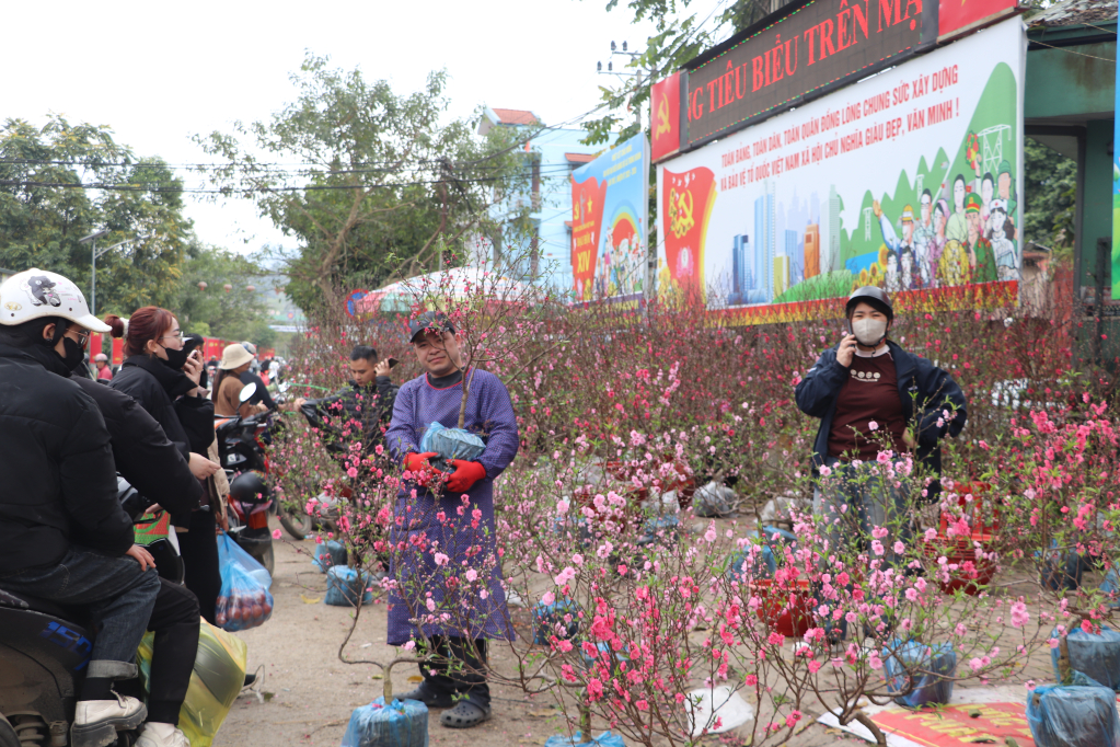 Tuy nhiên, không phải gian hàng nào cũng chung niềm vui “được mùa”. Ở khu vực bán cây cảnh, hoa Tết, không khí có phần trầm lắng hơn. Những chậu đào phai, quất cảnh được chăm chút, tạo thế công phu vẫn còn khá nhiều. Dù sắc hồng của đào, sắc vàng của quất đã nhuộm rực một góc chợ, song lượng khách dừng lại hỏi mua chưa như kỳ vọng.