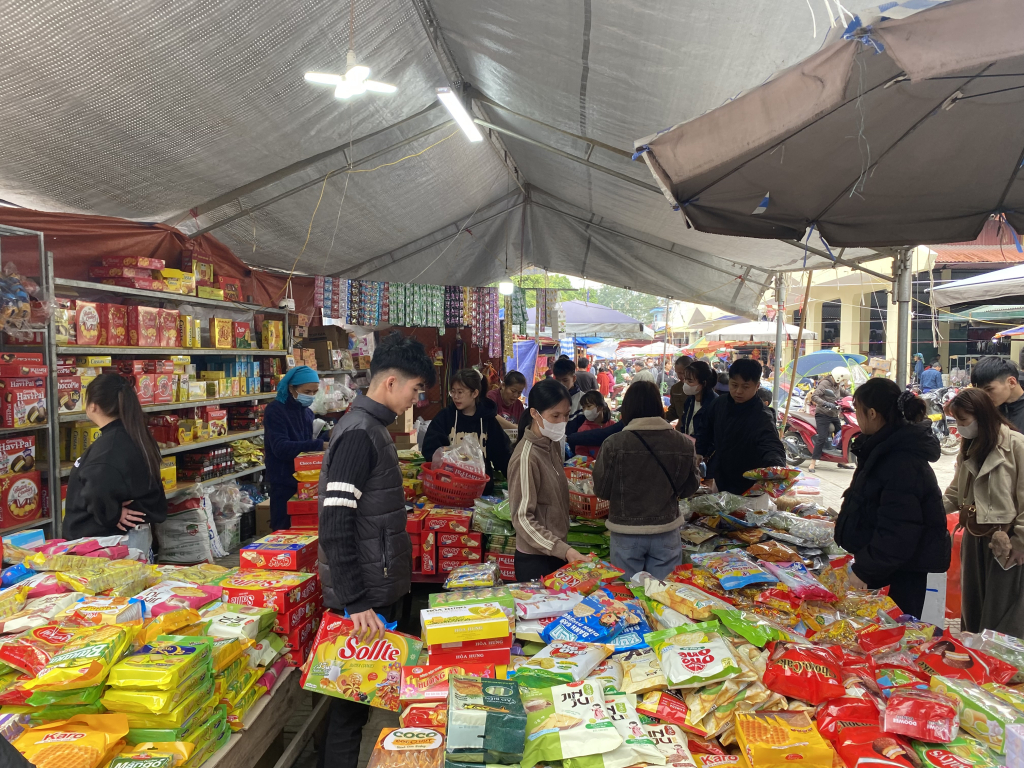 Ngay từ sáng sớm, khu vực chợ trung tâm xã Trùng Khánh nhộn nhịp người mua, kẻ bán. Các mặt hàng thiết yếu như: bánh kẹo, mứt Tết, nước giải khát, gia vị, đồ khô… được bày biện bắt mắt. Tiếng mời chào, mặc cả hòa cùng dòng người qua lại tạo nên không khí đặc trưng của phiên chợ cuối năm.