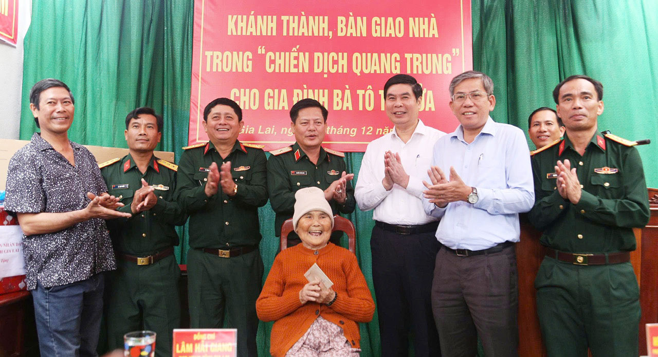 Quân đoàn 34 phối hợp chính quyền địa phương vừa tổ chức khánh thành, bàn giao ngôi nhà mới đầu tiên của “Chiến dịch Quang Trung”. Ảnh: NGỌC OAI