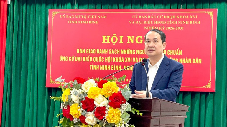 Tại hội nghị, Ban Thường trực Ủy ban Mặt trận Tổ quốc Việt Nam tỉnh và Ủy ban Bầu cử tỉnh Ninh Bình đã ký biên bản bàn giao danh sách những người đủ tiêu chuẩn ứng cử theo quy định.