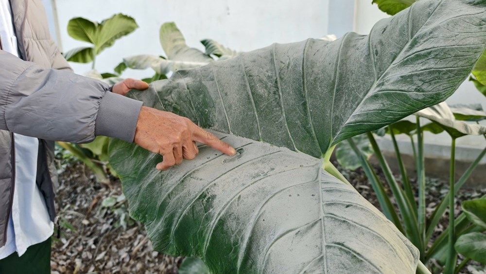 Lá cây trong sân nhà ông Hà Xuân Hải bám bụi trắng xóa