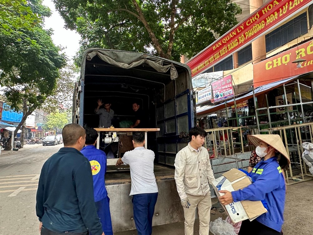 Nhằm hỗ trợ bà con tiểu thương di chuyển tài sản nhanh chóng, an toàn, UBND phường Hoa Lư chỉ đạo Ban quản lý chợ Hoa Lư thuê xe tải và bố trí thêm xe của lực lượng công an, trung tâm dịch vụ công. Đồng thời, huy động thêm gần 100 người gồm Ban Chỉ huy quân sự phường, Ban Quản lý chợ Hoa Lư, Đoàn thanh niên… để trợ giúp người dân thu dọn, vận chuyển đến vị trí mới.