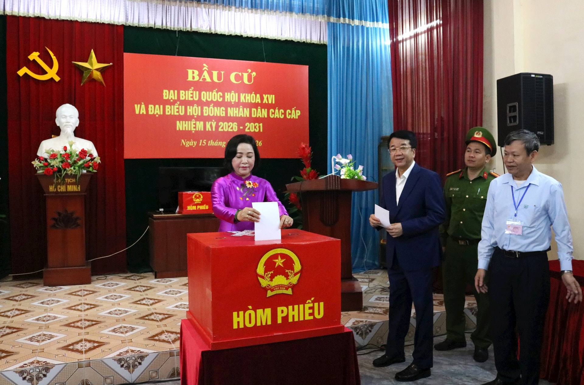 Bí thư Tỉnh ủy Ninh Bình Trần Huy Tuấn dự lễ khai mạc bầu cử và bỏ phiếu tại Khu vực bỏ phiếu số 31, phường Hoa Lư.