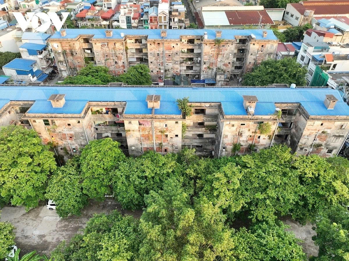 Khu tập thể 5 tầng gồm 2 tòa nhà số 2 và số 4 trên đường Trần Đăng Ninh, phường Nam Định, tỉnh Ninh Bình xuống cấp nghiêm trọng.