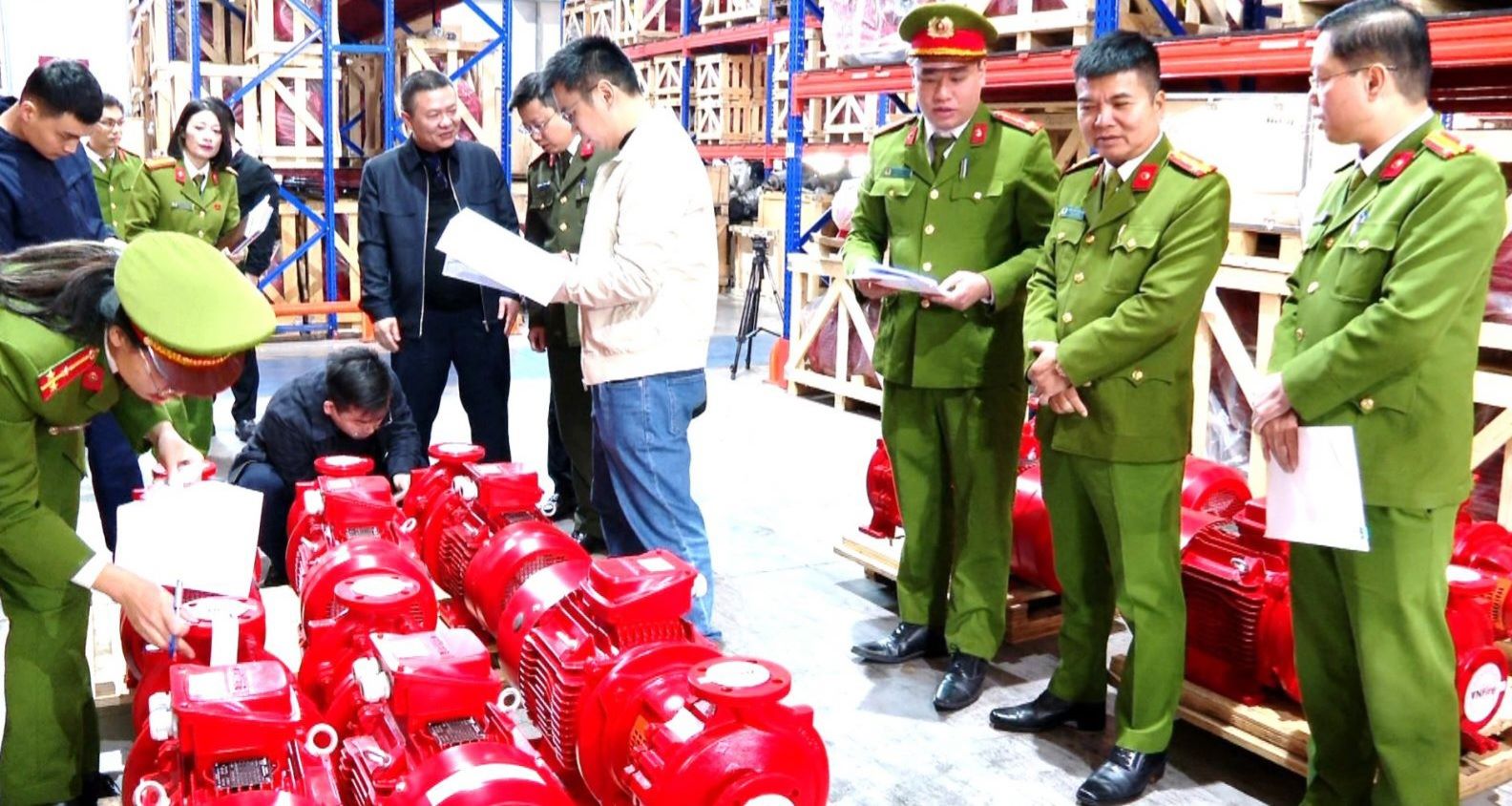 Theo báo cáo, cán bộ Phòng Cảnh sát phòng cháy chữa cháy và cứu nạn cứu hộ đã phối hợp với đơn vị kiểm định kiểm tra, đánh giá đầy đủ số lượng, chủng loại, mẫu mã, tem niêm phong các phương tiện, trang thiết bị PCCC và CNCH thuộc các lô hàng đề nghị kiểm định.