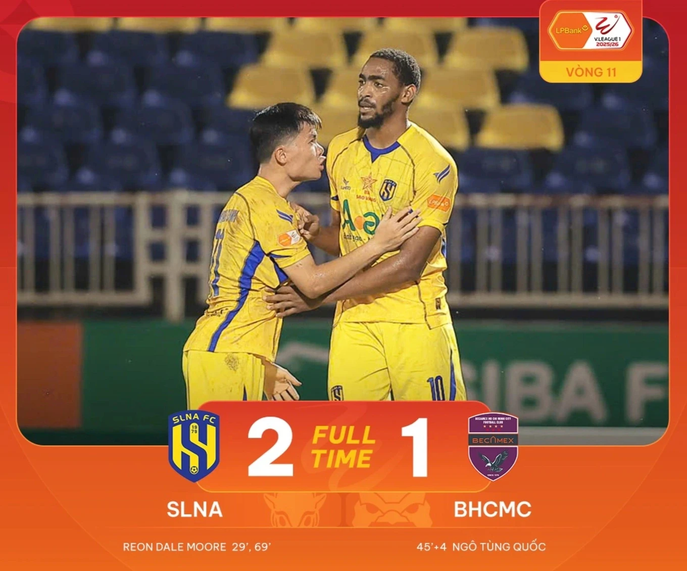 Ở các trận đấu khác, SL Nghệ An có chiến thắng 2-1 trước Becamex TPHCM nhờ cú đúp của Reon Moore, tạm cải thiện vị trí trên bảng xếp hạng.