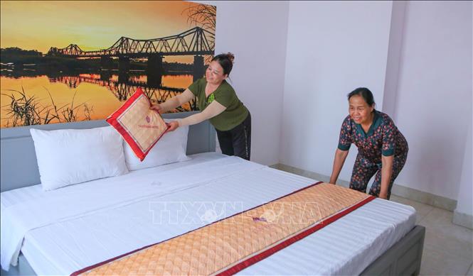 Nhân viên khách sạn Tân Thịnh (Ninh Bình) dọn phòng nghỉ, chuẩn bị đón du khách.