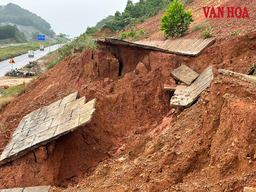 Đặc biệt đoạn Km7 trên tuyến đường Đông – Tây, cả mảng taluy dương lớn bị sạt trượt xuống đường, gây nứt vỡ nhiều hạng mục khác