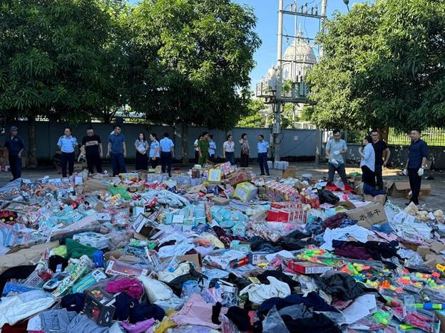 Hơn 24.600 sản phẩm hàng hóa là tang vật vi phạm hành chính được Chi cục QLTT tỉnh Ninh Bình tịch thu và tiêu hủy. Ảnh DMS