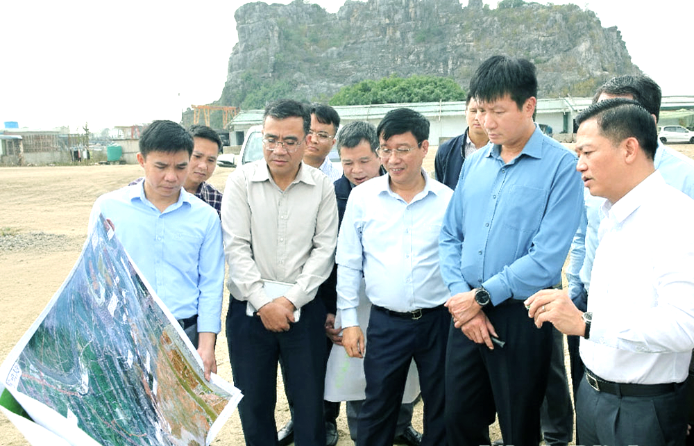 Ủy viên Trung ương Đảng, Bí thư Tỉnh ủy Trần Huy Tuấn kiểm tra tiến độ dự án tuyến đường kết nối đường du lịch Kênh Gà - Vân Trình và đường Đông Tây