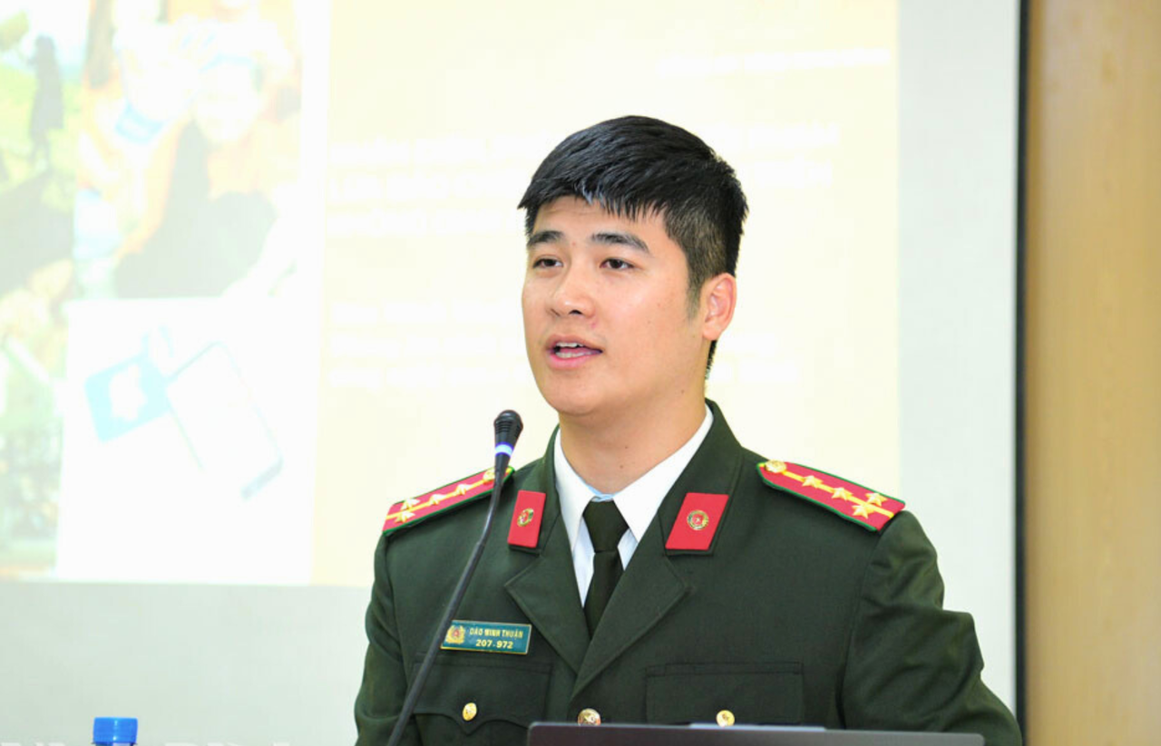 Báo cáo viên pháp luật Phòng An ninh mạng và phòng, chống tội phạm sử dụng công nghệ cao Công an tỉnh Ninh Bình phổ biến kiến thức pháp luật cho học sinh Trường THPT Hoa Lư A (Ảnh: Trần Ích)