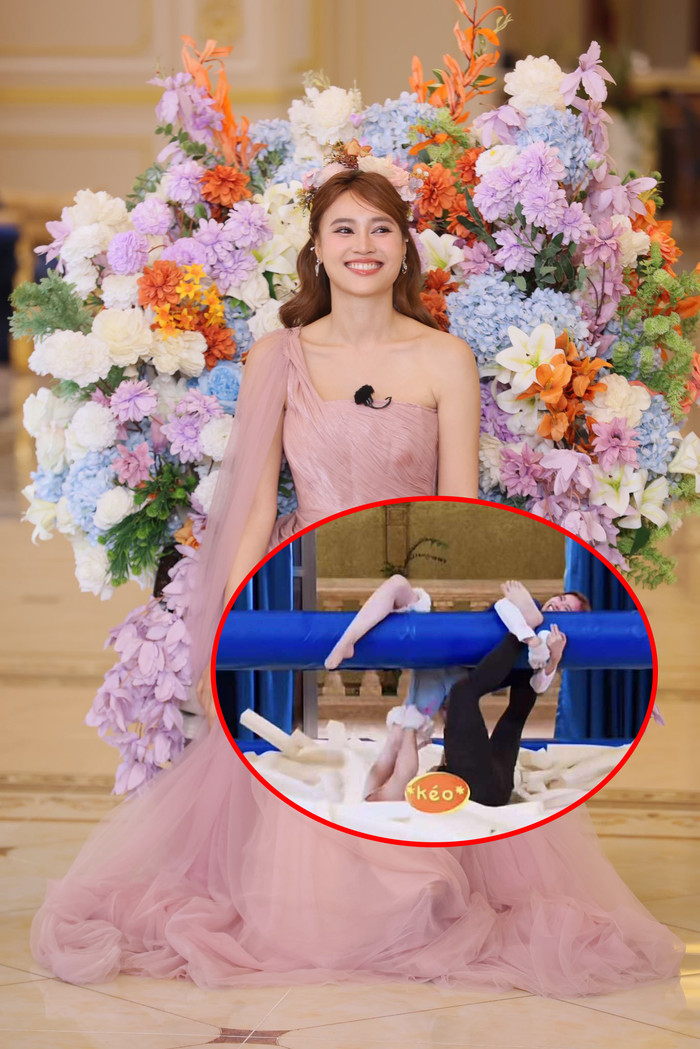 Khoảnh khắc này khiến nhiều sao nam đang có mặt như Quang Trung, Quân AP, Anh Tú Atus... phải ngỡ ngàng, còn nữ diễn viên mất một lúc mới nhận ra tình huống dở khóc dở cười. Dù vậy, cô vẫn nhanh chóng lấy lại bình tĩnh, nở nụ cười trấn an mọi người và khéo léo xử lý để tiếp tục chương trình.
