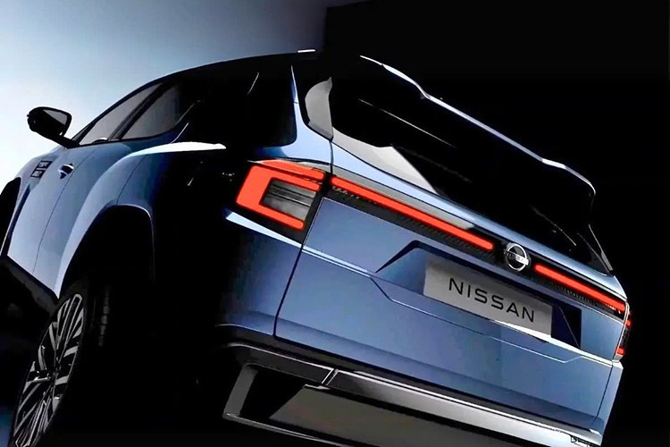 Thân xe sở hữu đường gân nổi kết hợp chi tiết tạo hình “Double-C” trên cửa trước, mang cảm hứng từ hình ảnh núi non, tạo nên phong cách mạnh mẽ và hiện đại. Phía sau xe được trang bị dải đèn LED kéo dài toàn chiều ngang, nối liền hai cụm đèn hậu chữ C với logo Nissan ở giữa. Dòng chữ “Tekton” được đặt nổi bật trên cửa cốp, góp phần tăng tính nhận diện. Xe dự kiến có nhiều tùy chọn màu sơn, gồm cả phiên bản một tông và hai tông màu tương phản.