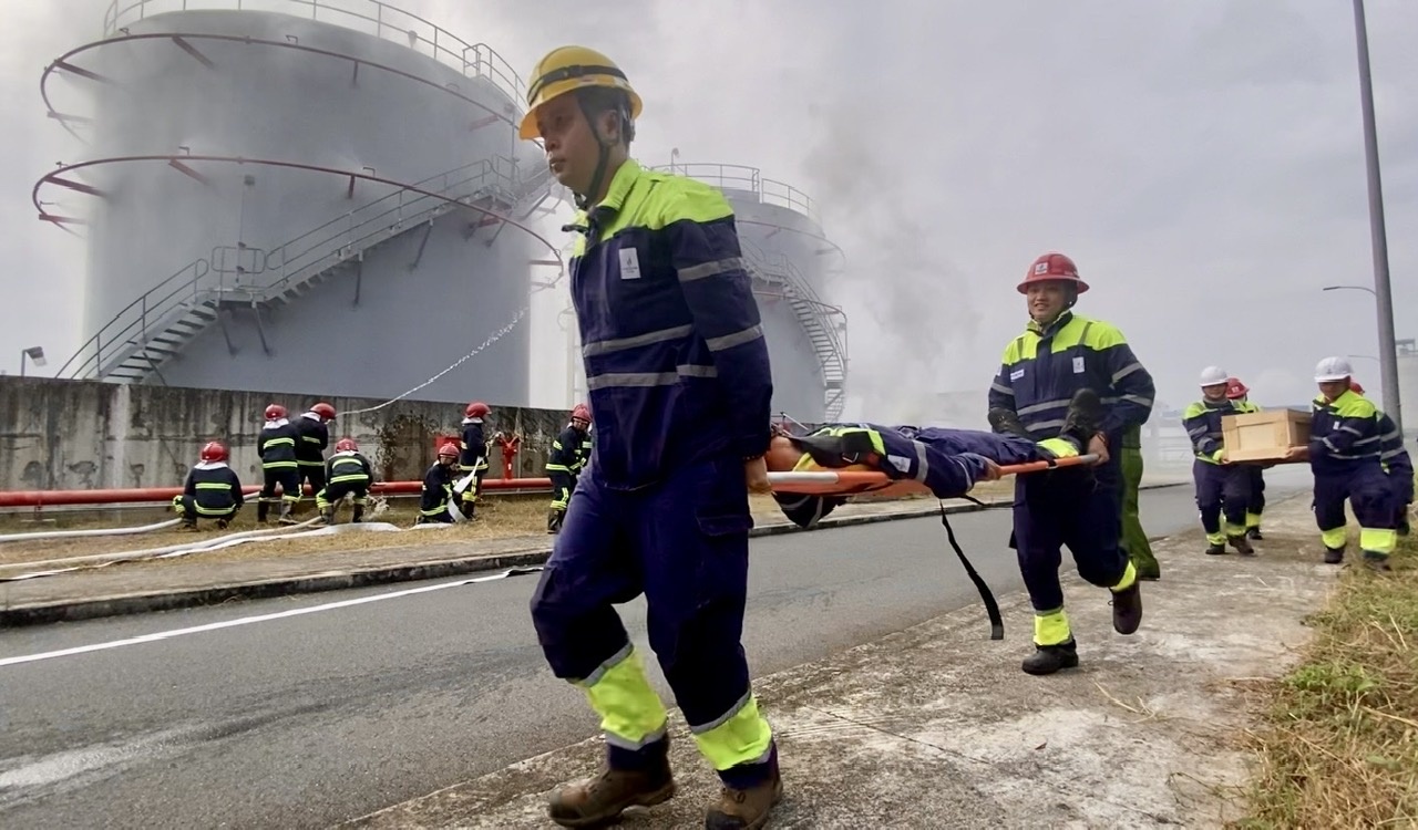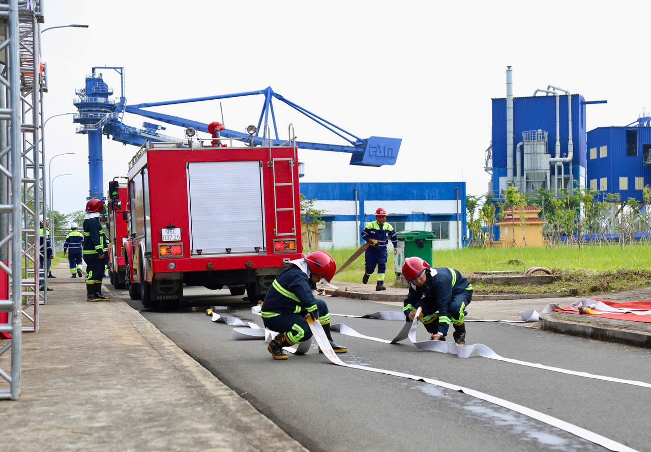 Ngay khi phát hiện sự cố, hệ thống báo cháy tự động kích hoạt, bộ phận trực vận hành nhanh chóng phát tín hiệu báo động toàn khu vực, đồng thời triển khai phương án “4 tại chỗ”: chỉ huy tại chỗ - lực lượng tại chỗ - phương tiện tại chỗ - hậu cần tại chỗ.