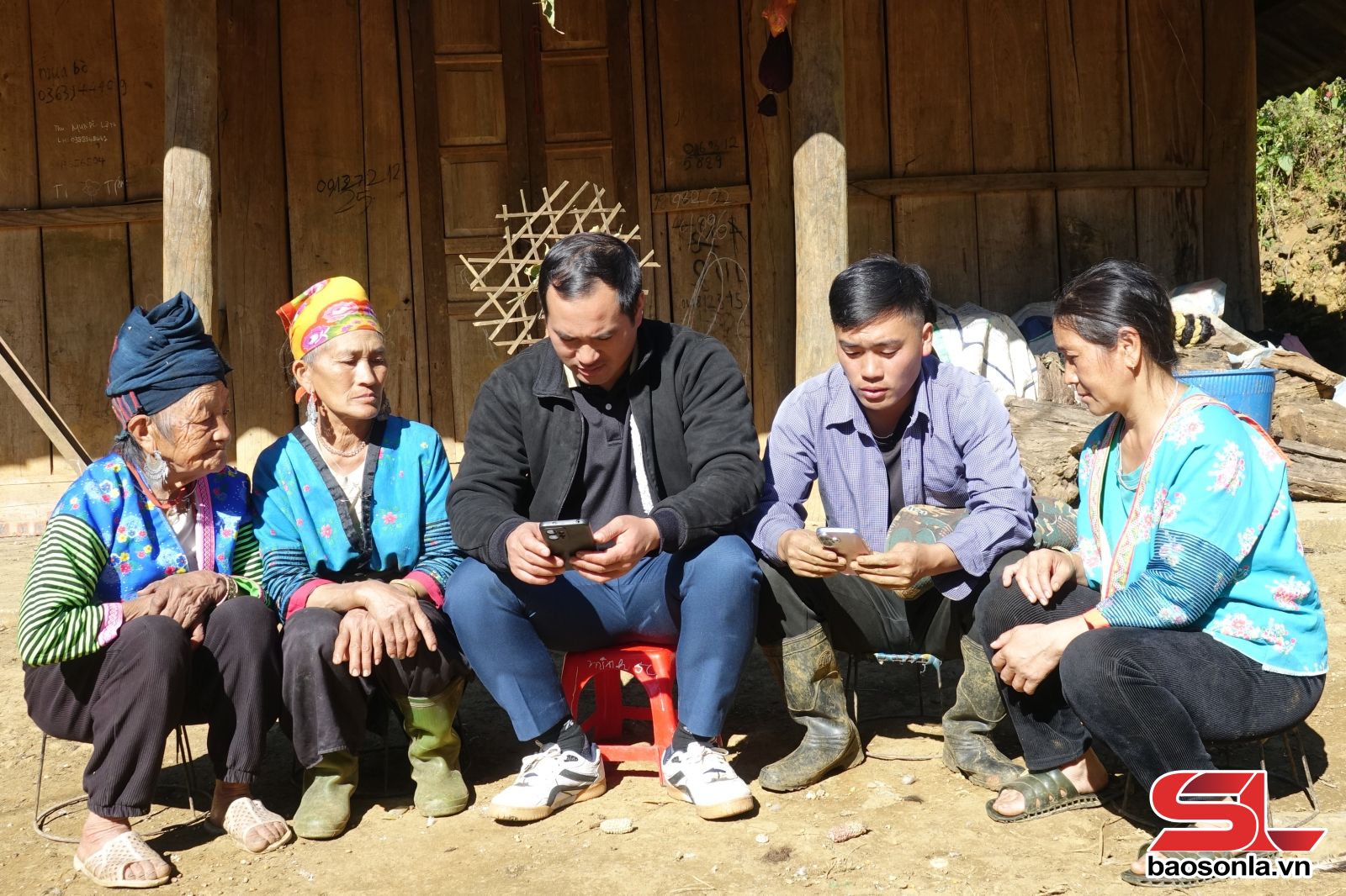 Tổ công nghệ số cộng đồng hướng dẫn người dân bản Co Mạ sử dụng dịch vụ công.