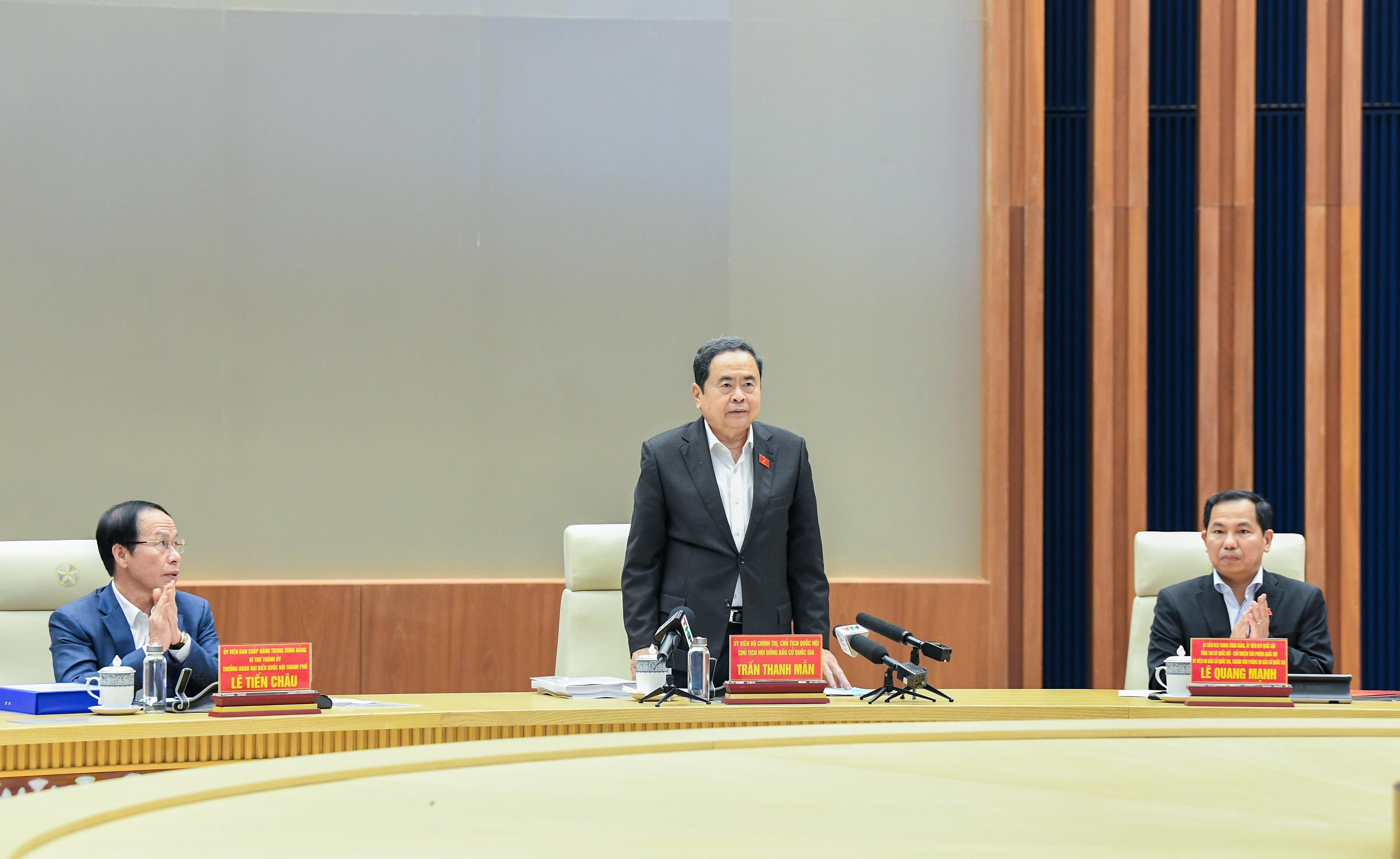 Chủ tịch Quốc hội Trần Thanh Mẫn làm việc với Ủy ban Bầu cử thành phố Hải Phòng. Ảnh: Lâm Hiển