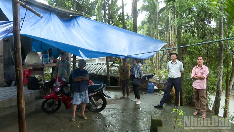 Chính quyền xã Phú Ninh đã đến tận nhà gia đình bà Trương Thị Kim Hậu ở thôn Phước Bắc để kiểm tra tình hình nguy cơ sạt lở.