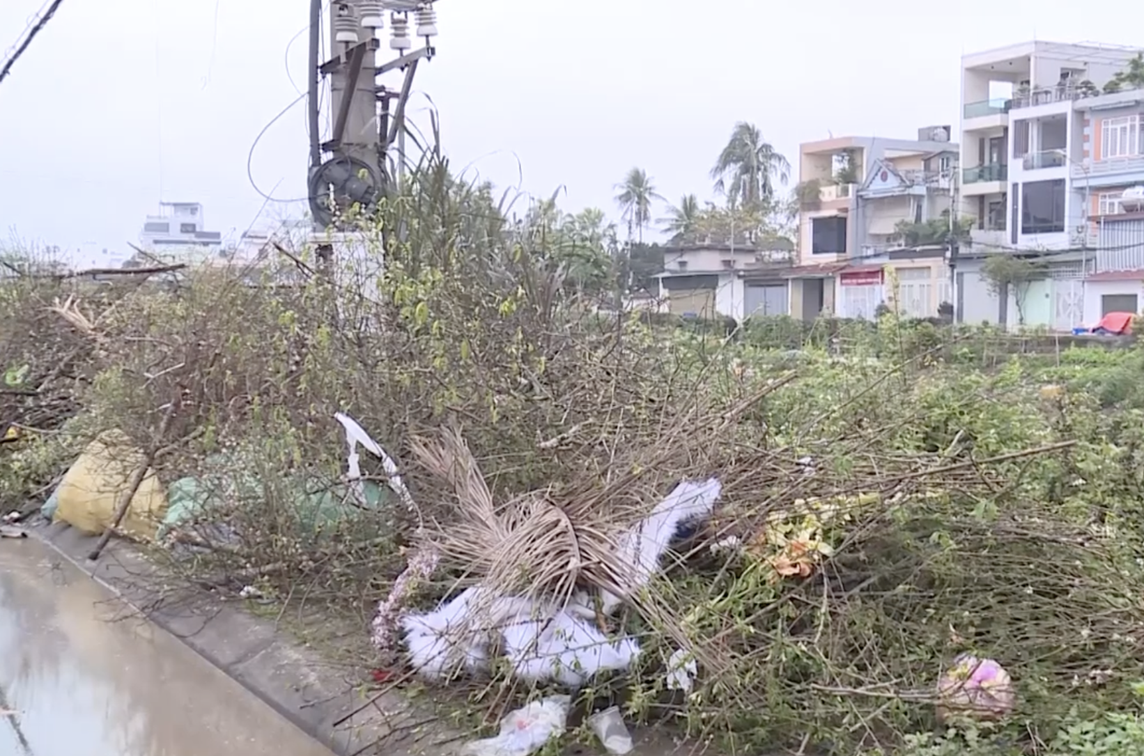 Rác thải sau Tết chủ yếu là cành đào, cây cảnh và vật dụng trang trí.
