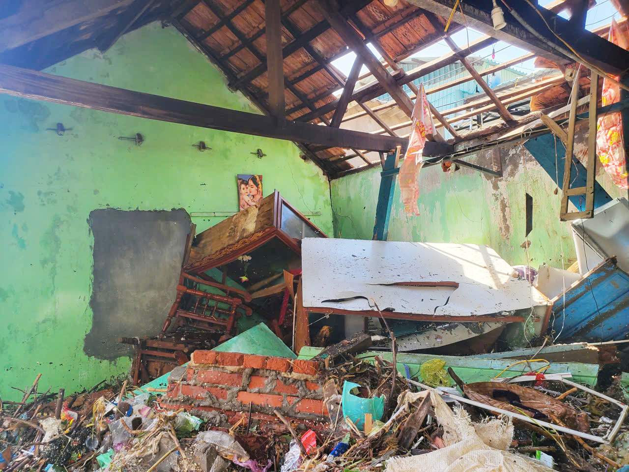Bên trong ngôi nhà ở làng Lý Chánh (bán đảo Nhơn Lý, Gia Lai) bị cuốn sập