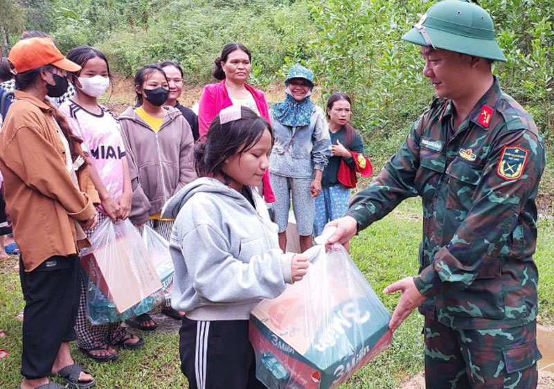 Trao quà hỗ trợ người dân bị cô lập tại xã Trà Tân.