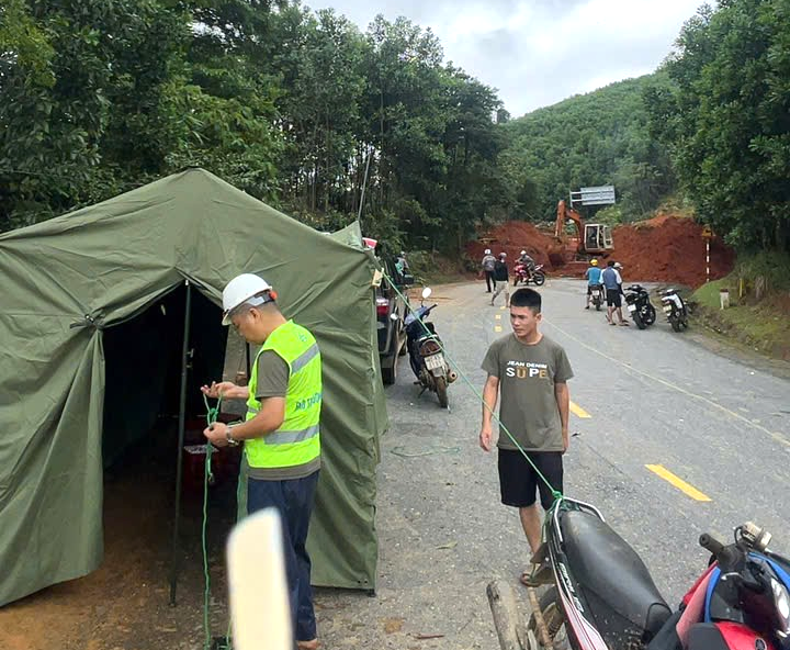 Dựng lán để khắc phục sạt lở, nhanh chóng thông tuyến giao thông.